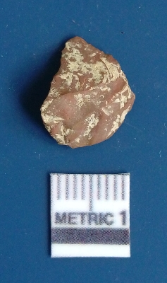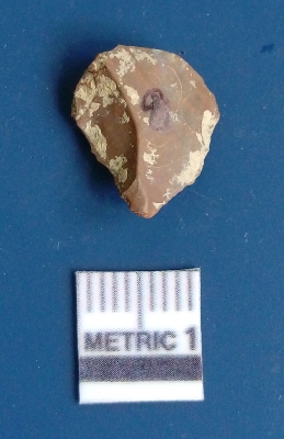 | Description / विवरण | The chert piece is dark in color, with a prominent bulb of percussion and sharp flaked edges. The piece is a part of lithic debitage or raw material for lithic knapping. The piece shows clear ripple marks and bulb of percussion. |