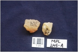 | Description / विवरण | Two pieces of stone tool manufacturing waste, one is a core fragment and other a nodule fragment. |