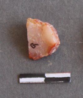 | Description / विवरण | Chalcedony flake with cortex on one side with calcium deposit. |