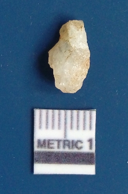 | Description / विवरण | The chert piece is dark in color, with a prominent bulb of percussion and sharp flaked edges. The piece is a part of lithic debitage or raw material for lithic knapping. The piece shows clear ripple marks and bulb of percussion. |