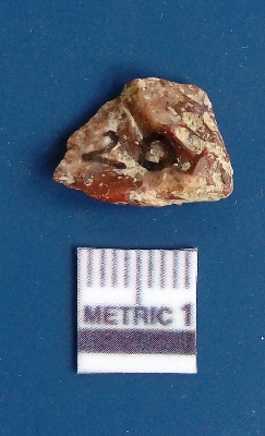 | Description / विवरण | The chert piece is dark in color, with a prominent bulb of percussion and sharp flaked edges. The piece is a part of lithic debitage or raw material for lithic knapping. The piece shows clear ripple marks and bulb of percussion. |