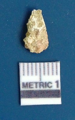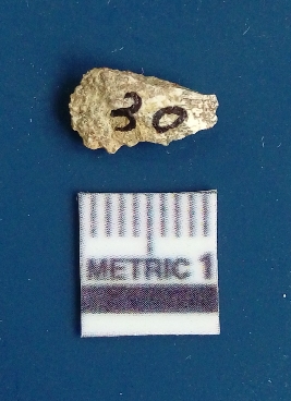 | Description / विवरण | The chert piece is dark in color, with a prominent bulb of percussion and sharp flaked edges. The piece is a part of lithic debitage or raw material for lithic knapping. The piece shows clear ripple marks and bulb of percussion. |