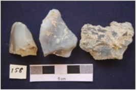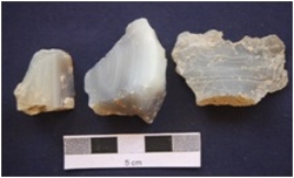 | Description / विवरण | Banded Agate 3. Among them two are cores with blade and flake scars. |