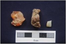 | Description / विवरण | Flakes, made on Agate, by-product of stone tool manufacturing, two flakes were given heat treatment before removal. |