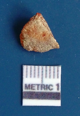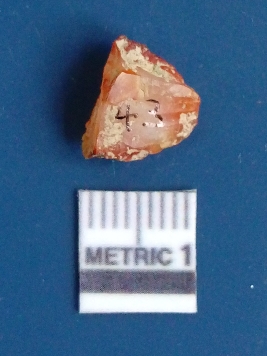 | Description / विवरण | It is carnelian flake red in color, with sharp flakes edges and a small bulb of percussion owing to knapping activity. The piece has sharp flaked edges and a crypto-crystalline matrix. |