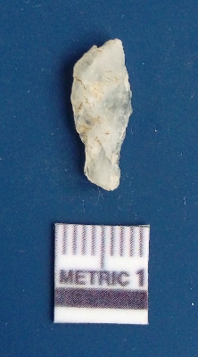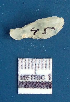 | Description / विवरण | The quartz flake has sharp flaked edges and pointed ends as a result of flaking. The piece is semi-transparent in nature with irregular fracture pattern. The piece is roughly triangular in shape and has a prominent bulb of percussion. |