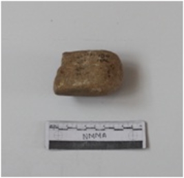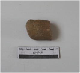 | Description / विवरण | Sandstone muller, broken from one end. Flattened on one surface. |