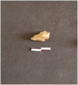 | Description / विवरण | The chert piece has a pointed end and a flat truncated base. The piece has numerous flake scars on the surface. One side of the piece is flat. The piece is a bi-product of lithic knapping. |
