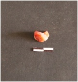 | Description / विवरण | The carnelian lunate piece has sharp edge on one end and has a bulb on the other. |