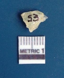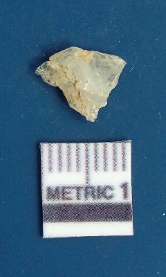 | Description / विवरण | The quartz flake has sharp flaked edges and pointed ends as a result of flaking. The piece is semi-transparent in nature with irregular fracture pattern. The piece is roughly triangular in shape and has a prominent bulb of percussion. |