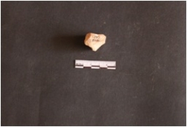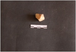 | Description / विवरण | The chert piece has a prominent ridge and sides flaked. The piece is a bi-product of lithic knapping. |