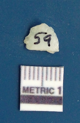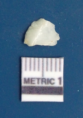 | Description / विवरण | The quartz flake has sharp flaked edges and pointed ends as a result of flaking. The piece is semi-transparent in nature with irregular fracture pattern. The piece is roughly triangular in shape and has a prominent bulb of percussion. |