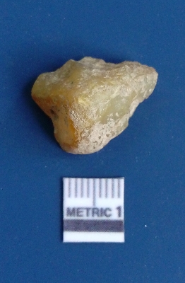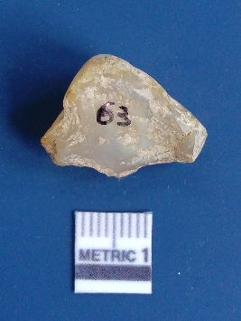 | Description / विवरण | It is chalcedony flake, translucent in appearance. The piece shows sharp pointed ends and flake scars on the surface as a result of flaking. The piece shows a bulb of percussion. |