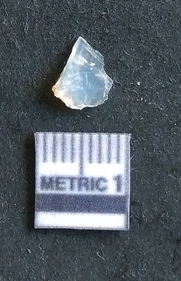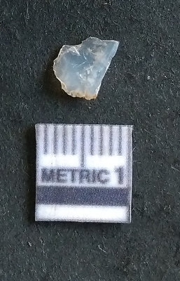 | Description / विवरण | The Quartz flake is small, roughly squarish in shape and shows sharp flaked ends and a prominent bulb of percussion. The piece is translucent white and has an eneven fracture pattern. |