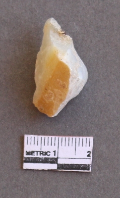 | Description / विवरण | The quartz piece as a pointed end, and roughly triangular shape. It has cortex on one end. |
