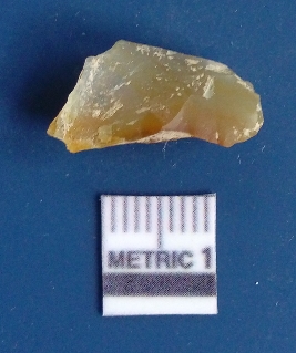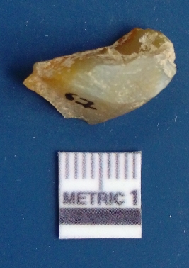 | Description / विवरण | It is chalcedony flake, translucent in appearance. The piece shows sharp pointed ends and flake scars on the surface as a result of flaking. The piece shows a bulb of percussion. |