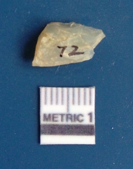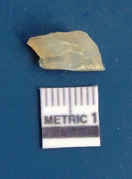 | Description / विवरण | It is chalcedony flake, translucent in appearance. The piece shows sharp pointed ends and flake scars on the surface as a result of flaking. The piece shows a bulb of percussion. |