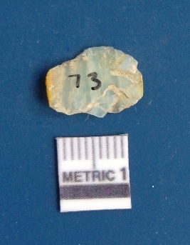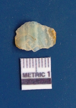 | Description / विवरण | It is chalcedony flake, translucent in appearance. The piece shows sharp pointed ends and flake scars on the surface as a result of flaking. The piece shows a bulb of percussion. |