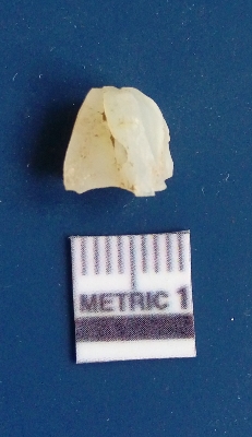 | Description / विवरण | It is chalcedony flake, translucent in appearance. The piece shows sharp pointed ends and flake scars on the surface as a result of flaking. The piece shows a bulb of percussion. |
