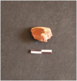| Description / विवरण | The chert flake has pointed ends and sharp edges. The piece is chunky, with a bulb of percussion on one end. |