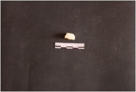 | Description / विवरण | The chalcedony piece as a pointed end and ridges as a result of flaking. |