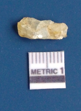 | Description / विवरण | It is chalcedony flake, translucent in appearance. The piece shows sharp pointed ends and flake scars on the surface as a result of flaking. The piece shows a bulb of percussion. |