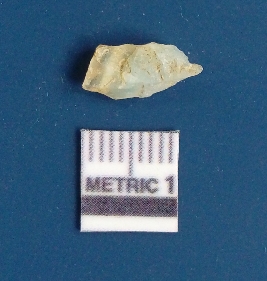 | Description / विवरण | It is chalcedony flake, translucent in appearance. The piece shows sharp pointed ends and flake scars on the surface as a result of flaking. The piece shows a bulb of percussion. |