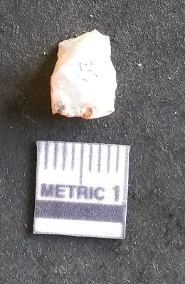 | Description / विवरण | The quartz piece is small, roughly cuboidal and has sharp flaked edges as a result of flaking activity. The piece is pale yellow in colour and has a crypto-crystalline matrix. |