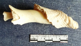 | Description / विवरण | This is a shell piece, a waste material manufactural bi-product, this piece is of the columella portion of the shell. |
