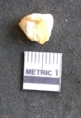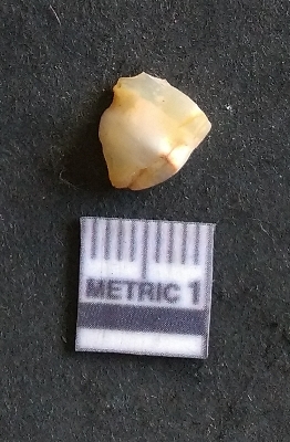 | Description / विवरण | The chalcedony piece is small, roughly triangular and has sharp flaked edges as a result of flaking activity. The piece is pale yellow in colour and has a crypto-crystalline matrix |