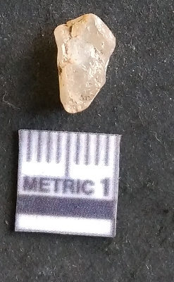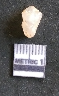 | Description / विवरण | The quartz piece is rolled and has uneven fracture pattern as evident from the rough flake scars on the surface of the flake. The piece is transparent in appearance. |