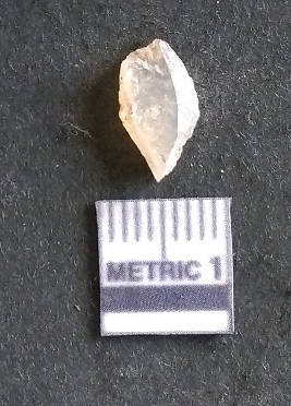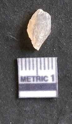 | Description / विवरण | The quartz piece is almond shaped and semi-transparent in appearance. The flake shows a ridge and bulb of percussion as a result of flaking. |