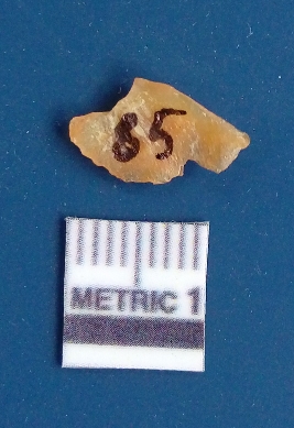 | Description / विवरण | It is chalcedony flake, translucent in appearance. The piece shows sharp pointed ends and flake scars on the surface as a result of flaking. The piece shows a bulb of percussion. |