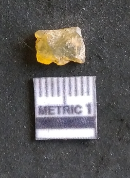 | Description / विवरण | The chalcedony flake is flat, yellow in colour and has sharp flaked edges as a result of knapping activity. The piece has rounded edges and flake scars on the surface. |