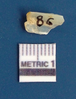 | Description / विवरण | It is chalcedony flake, translucent in appearance. The piece shows sharp pointed ends and flake scars on the surface as a result of flaking. The piece shows a bulb of percussion. |