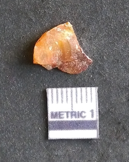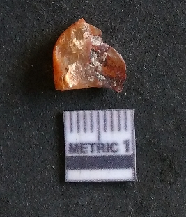 | Description / विवरण | The carnelian flake is small, reddish in colour and has sharp flaked ends as a result of flaking. The piece shows flake scars on the surface and bulb of percussion as a result of lithic knapping. |