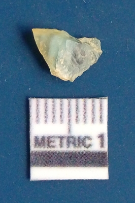 | Description / विवरण | It is chalcedony flake, translucent in appearance. The piece shows sharp pointed ends and flake scars on the surface as a result of flaking. The piece shows a bulb of percussion. |