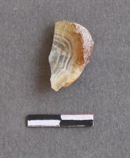 | Description / विवरण | It is a banded agate fragment with thin flaked sides and cortex on one end. |