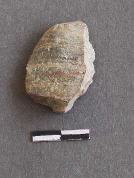 | Description / विवरण | It s an agate fragment, with bulb of percussion on ventral side of the fragment. Flake ridges on the surface. It s a banded agate and translucent in appearance. |