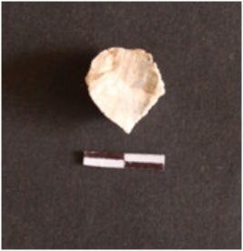 | Description / विवरण | The Agate piece has a pointed end and a rounded edge. The surface has flake scars. The other surface has a negative flake scars. |