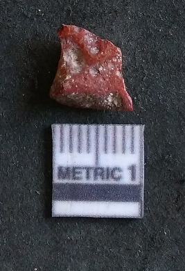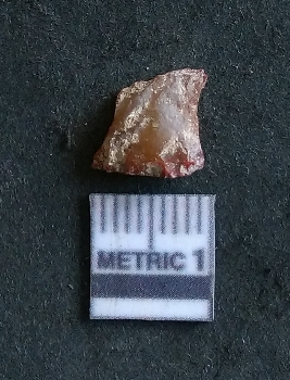 | Description / विवरण | The carnelian flake is small, reddish in colour and has sharp flaked ends as a result of flaking. The piece shows flake scars on the surface and bulb of percussion as a result of lithic knapping. |