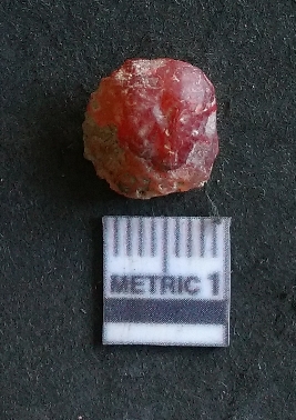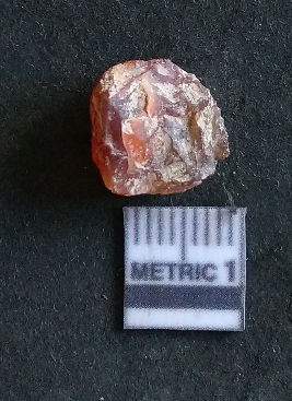 | Description / विवरण | The carnelian flake is small, reddish in colour and has sharp flaked ends as a result of flaking. The piece shows flake scars on the surface and bulb of percussion as a result of lithic knapping. |