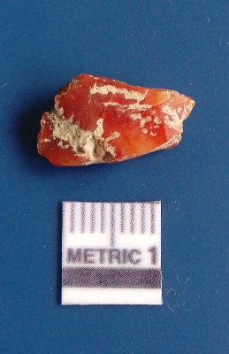 | Description / विवरण | It is chalcedony flake, translucent in appearance. The piece shows sharp pointed ends and flake scars on the surface as a result of flaking. The piece shows a bulb of percussion. |