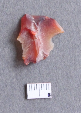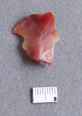 | Description / विवरण | It s a carnelian flake, with a striking platform with bulb of percussion on the ventral side. It s orangish in color, flake edges on the surface with ripple on it due to heavy percussion. |