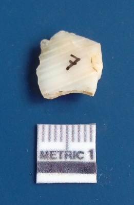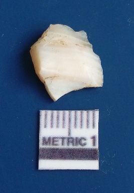 | Description / विवरण | It is chalcedony flake, translucent in appearance. The piece shows sharp pointed ends and flake scars on the surface as a result of flaking. The piece shows a bulb of percussion. |