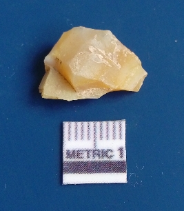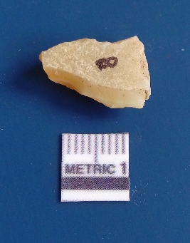 | Description / विवरण | It is chalcedony flake, translucent in appearance. The piece shows sharp pointed ends and flake scars on the surface as a result of flaking. The piece shows a bulb of percussion. |