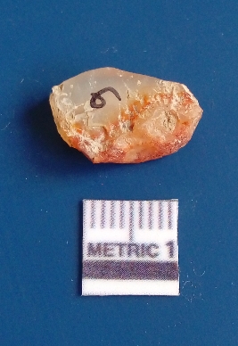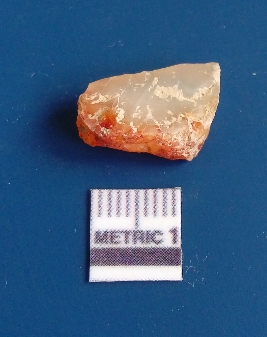 | Description / विवरण | It is chalcedony flake, translucent in appearance. The piece shows sharp pointed ends and flake scars on the surface as a result of flaking. The piece shows a bulb of percussion. |