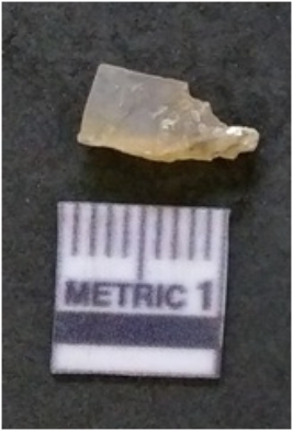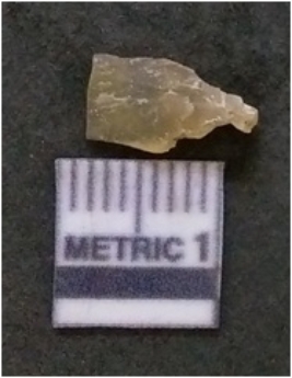 | Description / विवरण | It is chalcedony flake, translucent in appearance. The piece shows sharp pointed ends and flake scars on the surface as a result of flaking. The piece shows a bulb of percussion. |