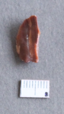 | Description / विवरण | It is a jasper nodule with sharp edges and striking platform on the proximal end. Flakes scars on the surface with ripples on it. |