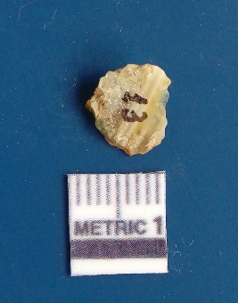 | Description / विवरण | It is chalcedony flake, translucent in appearance. The piece shows sharp pointed ends and flake scars on the surface as a result of flaking. The piece shows a bulb of percussion. |